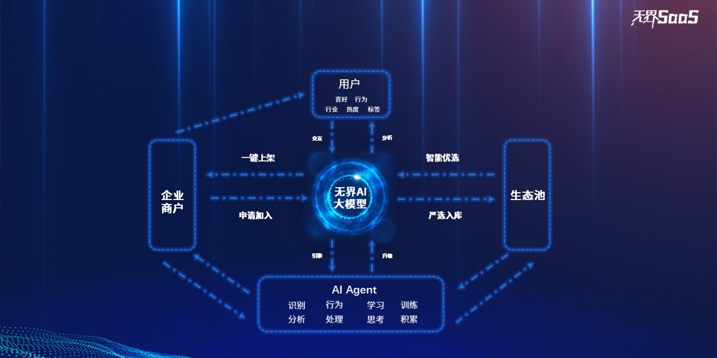 無界SaaS提供技術服務和整套解決方案,賦能加持各行各業企業商戶、經營創業者等提升經營維度,解決了廣大中小微企業經營維度低、融資難、數字化轉型難的問題;